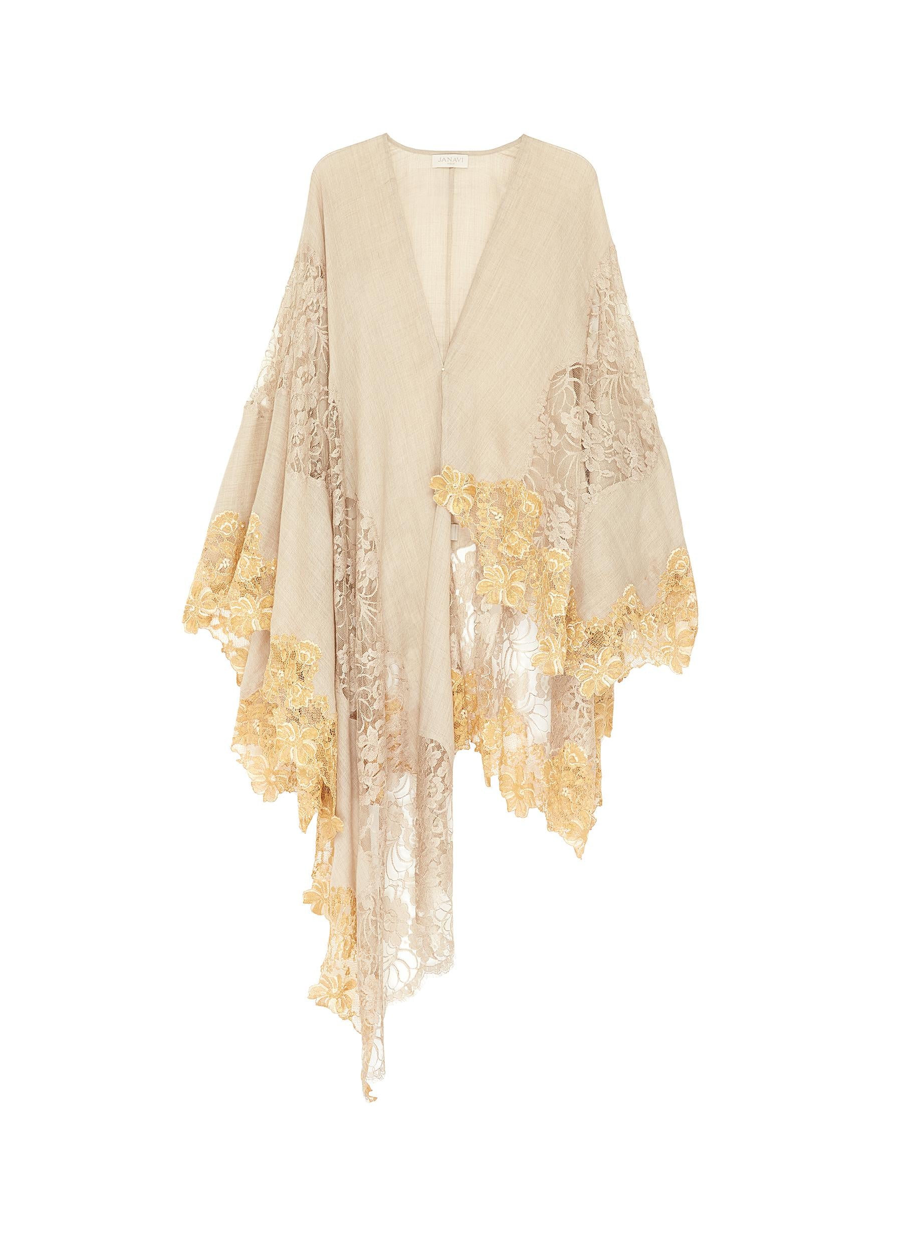 Chantilly lace trim cashmere cape - Janavi - Neutral