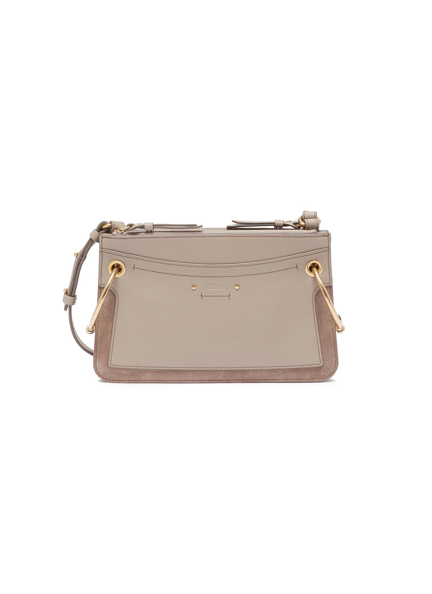 'Roy' suede panel leather crossbody bag - Chloé - Grey
