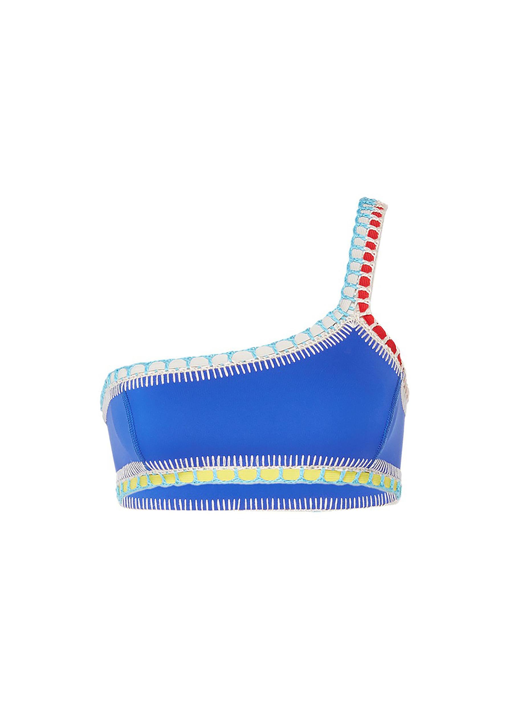 'Tuesday' crochet trim one-shoulder bikini top - KIINI - Blue