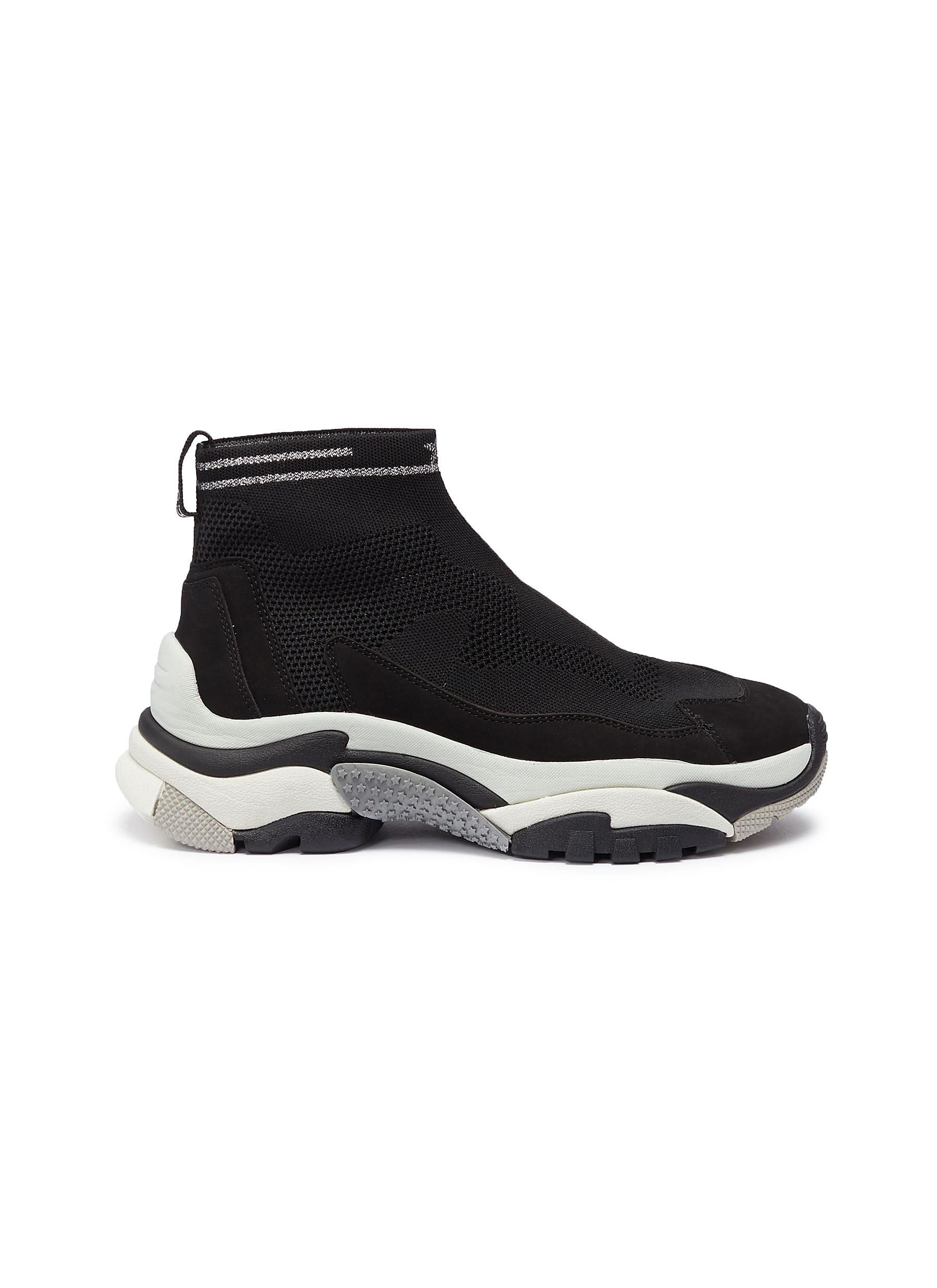 'Addict Stretch' chunky outsole sock knit high top sneakers - ASH - Black