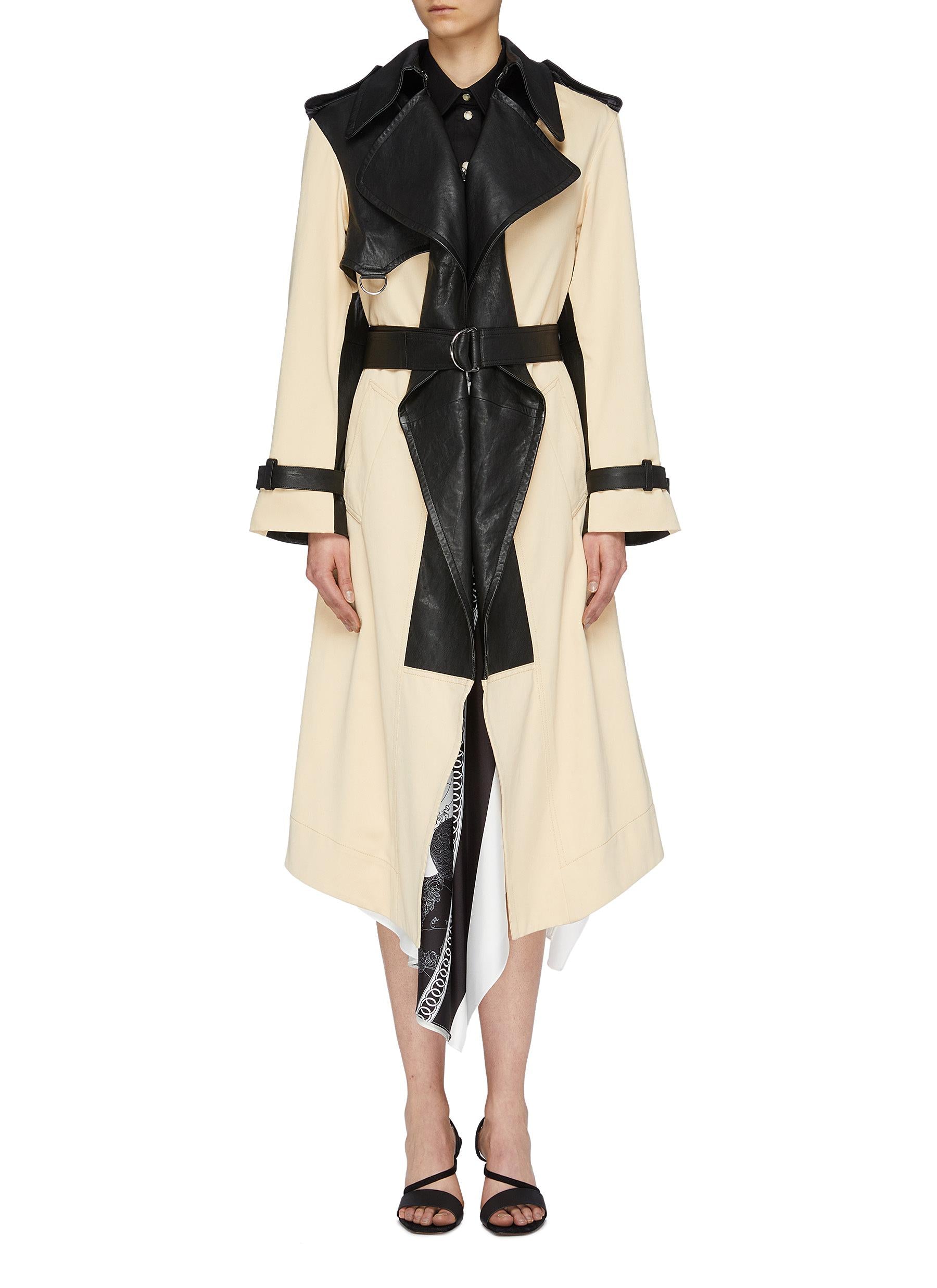 Belted waterfall lapel colourblock leather trench coat - Cédric Charlier - Multi-colour