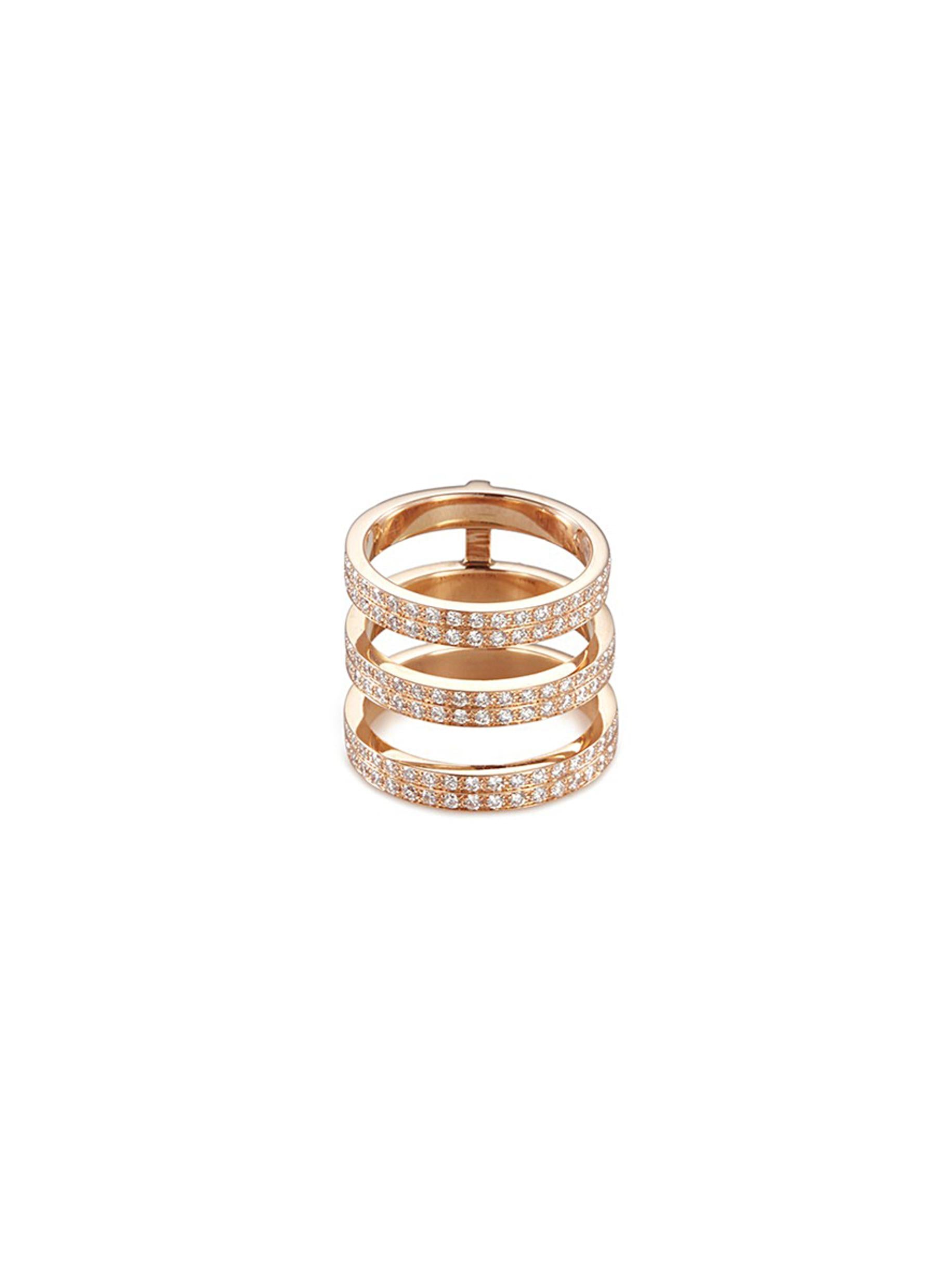 'Berbère' diamond 18k rose gold three row phalanx ring - REPOSSI - Metallic