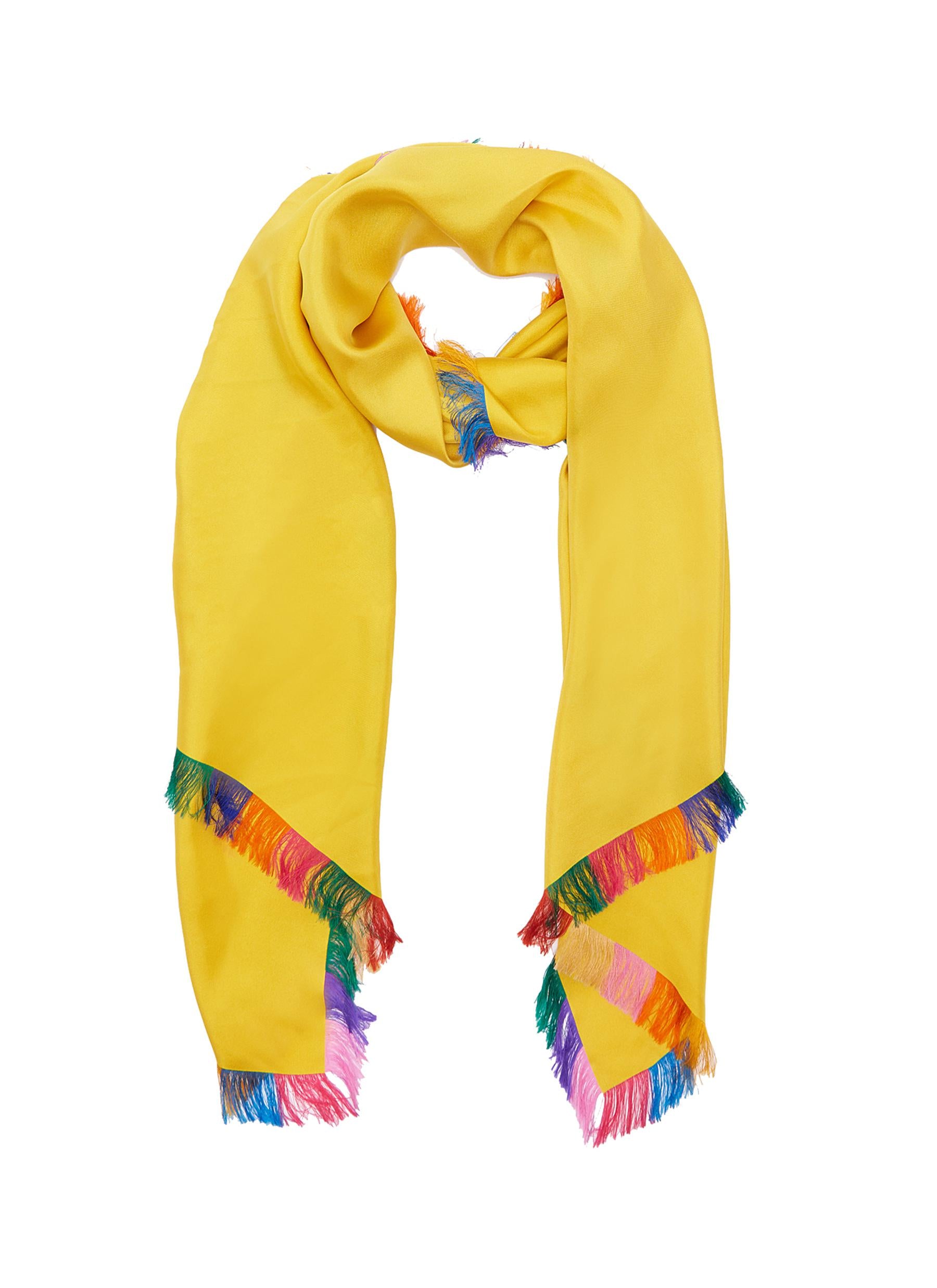 Colourblock frayed edge silk twill scarf - Franco Ferrari - Yellow