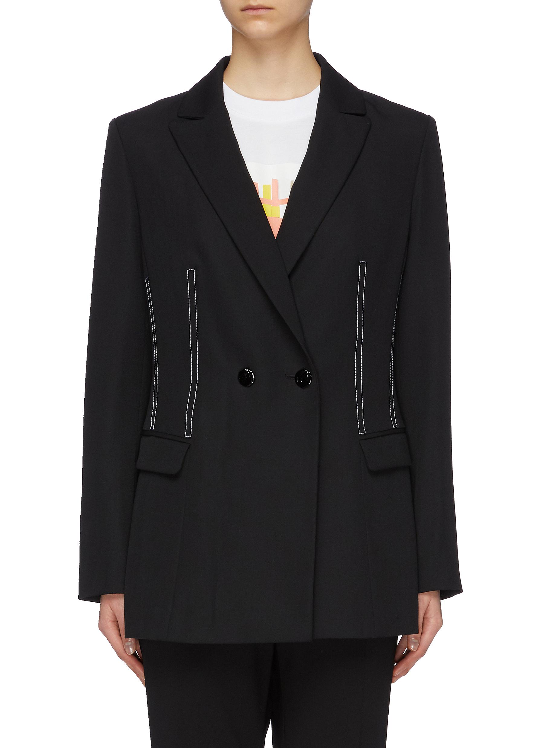 Contrast topstitching wool blazer - PORTSPURE - Black