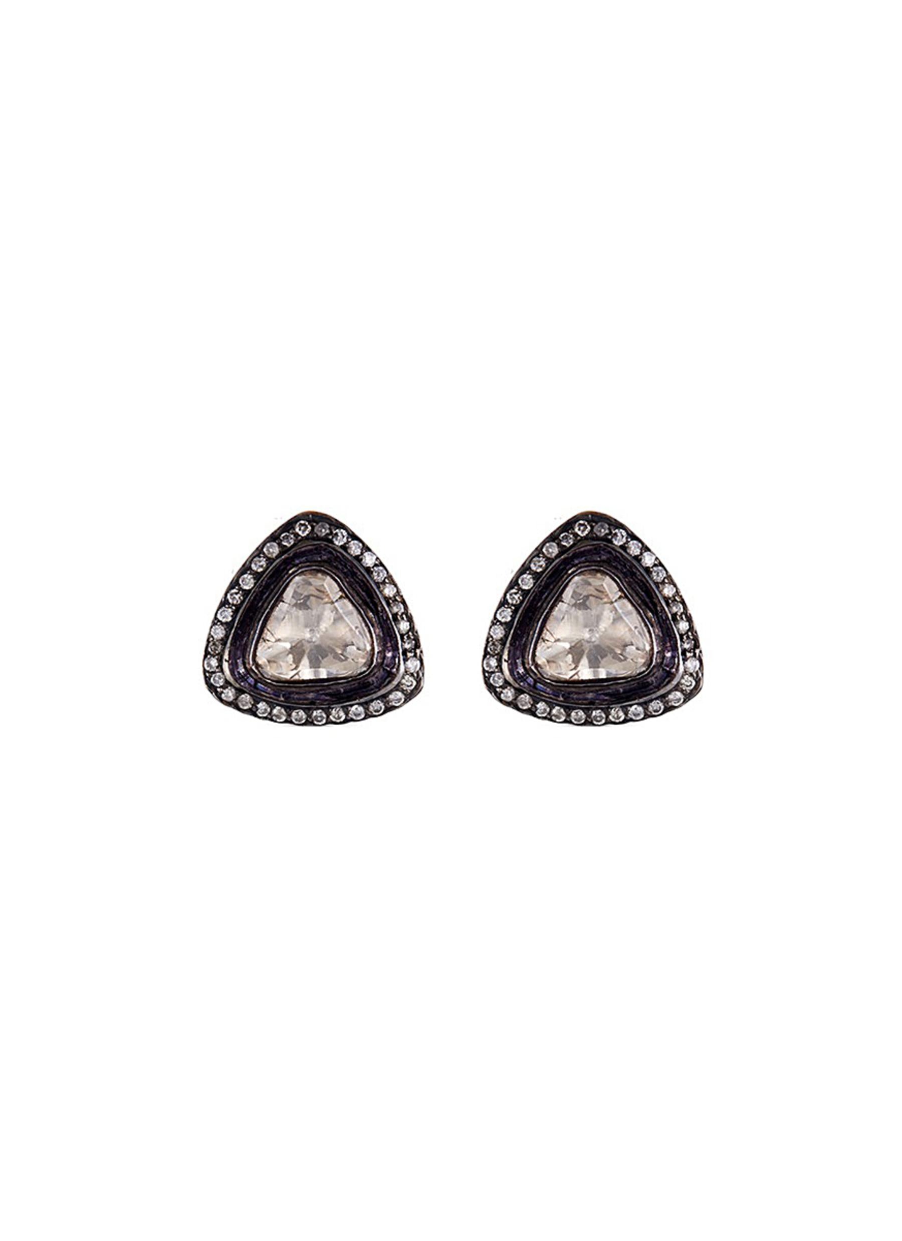 Diamond gold alloy triangle stud earrings - Aishwarya - Metallic