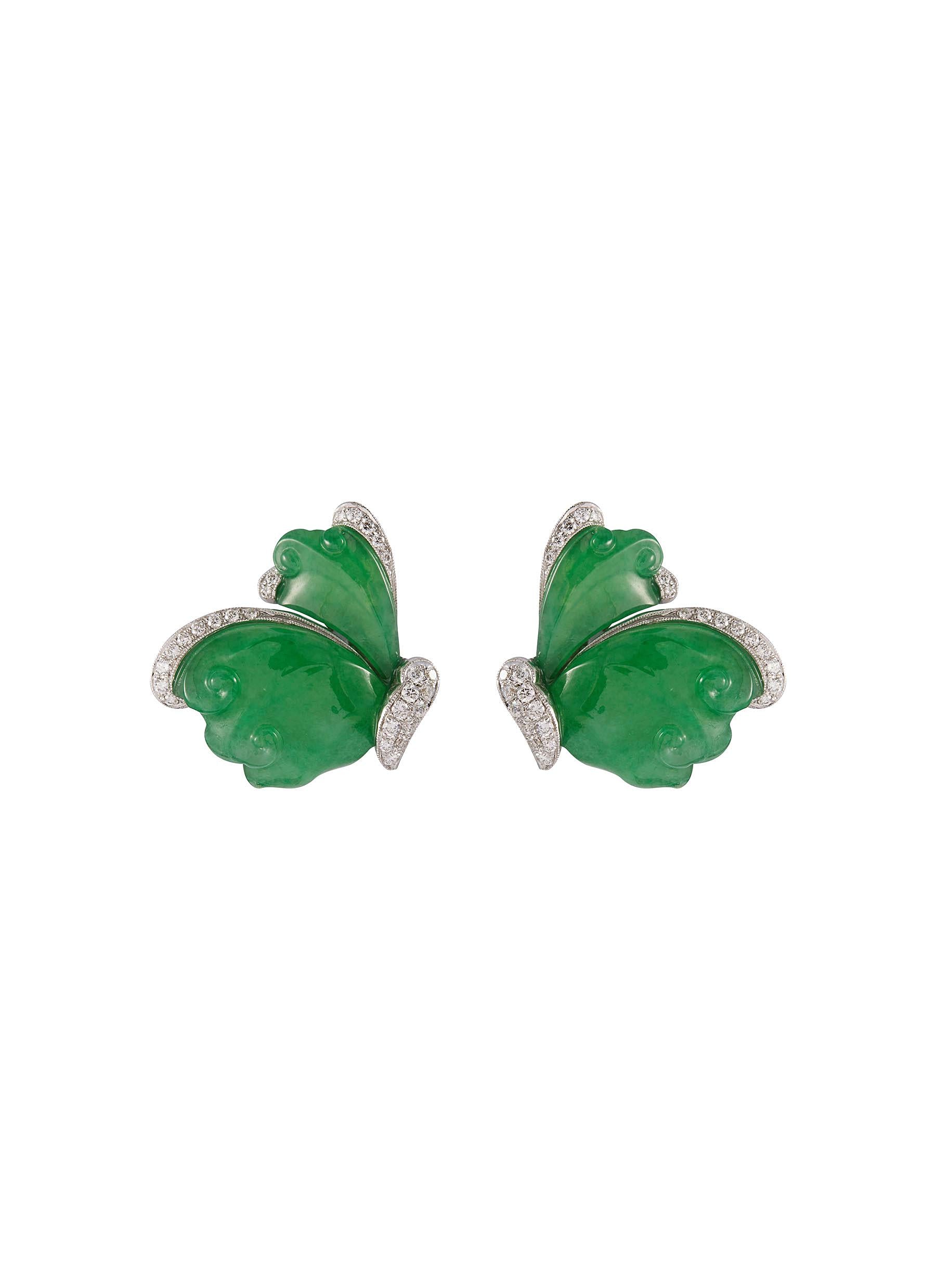 Diamond jade 18k white gold butterfly earrings - Samuel Kung - Metallic