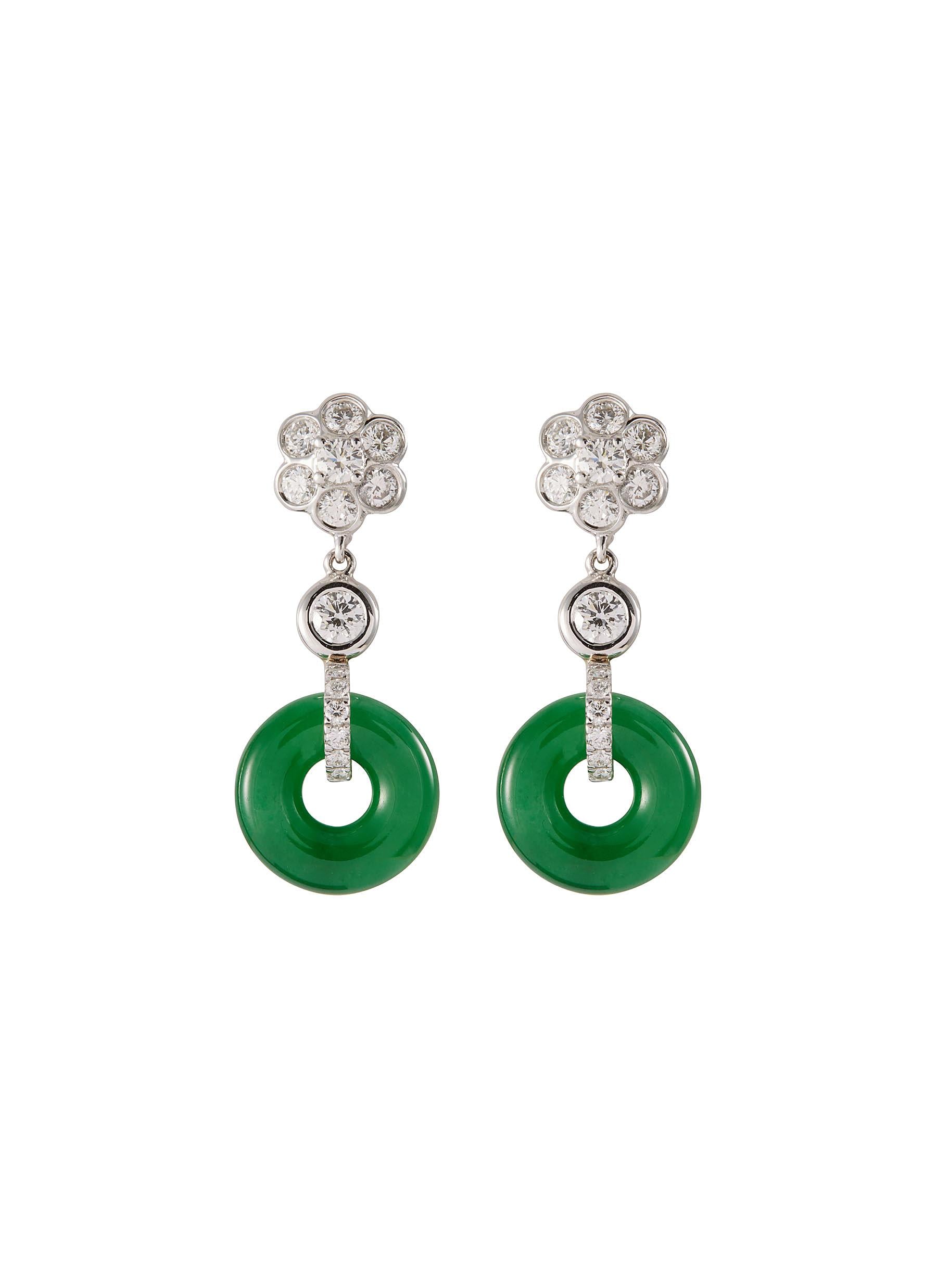 Diamond jade 18k white gold drop earrings - Samuel Kung - Metallic