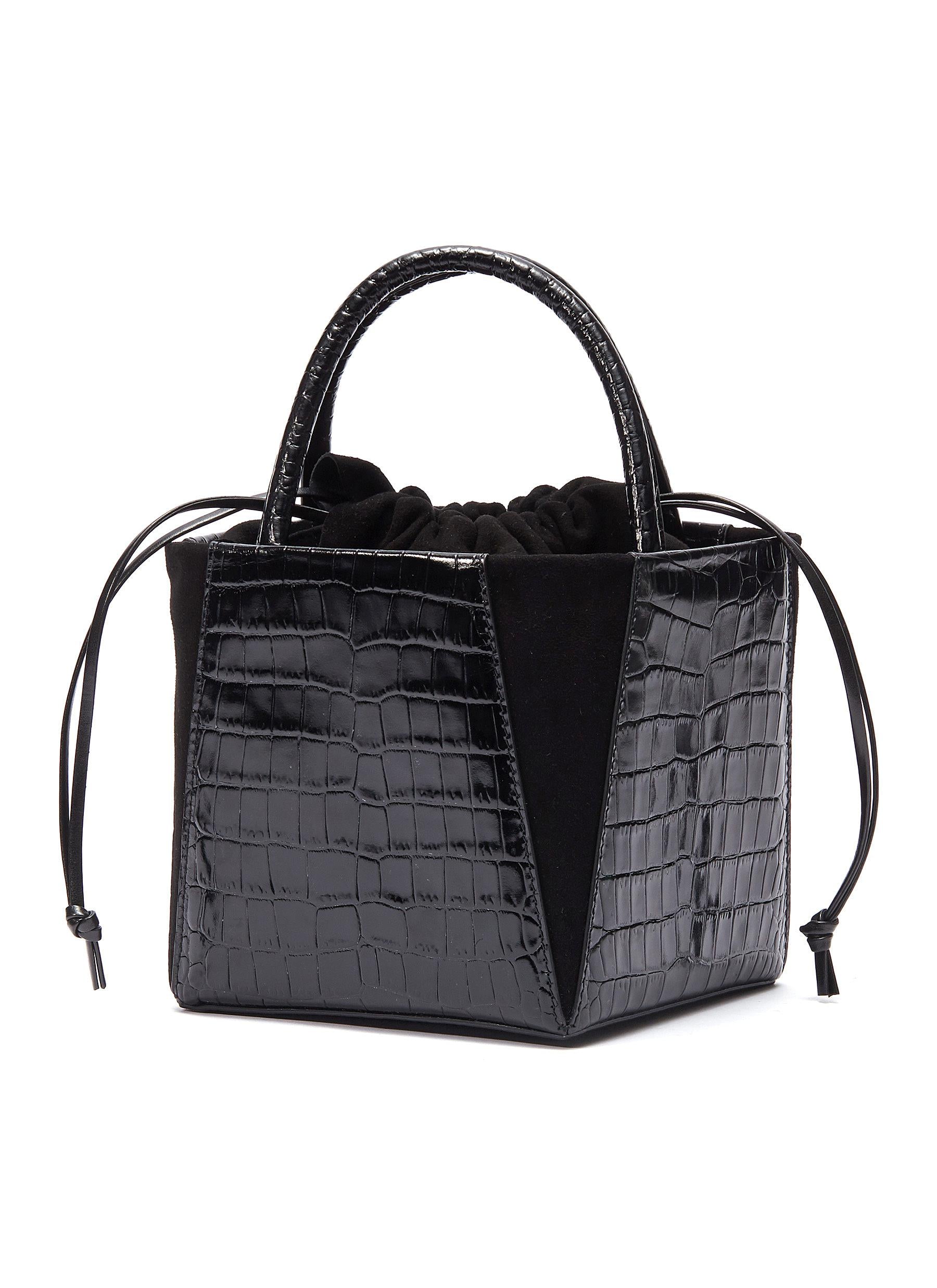 'Dorthea' suede panel croc embossed leather top handle bag - Trademark - Black