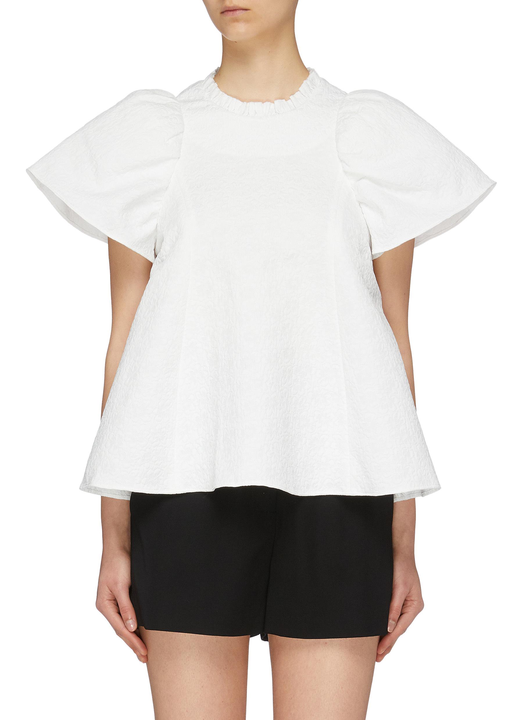 Flared sleeve ruffle neck top - SHUSHU/TONG - White