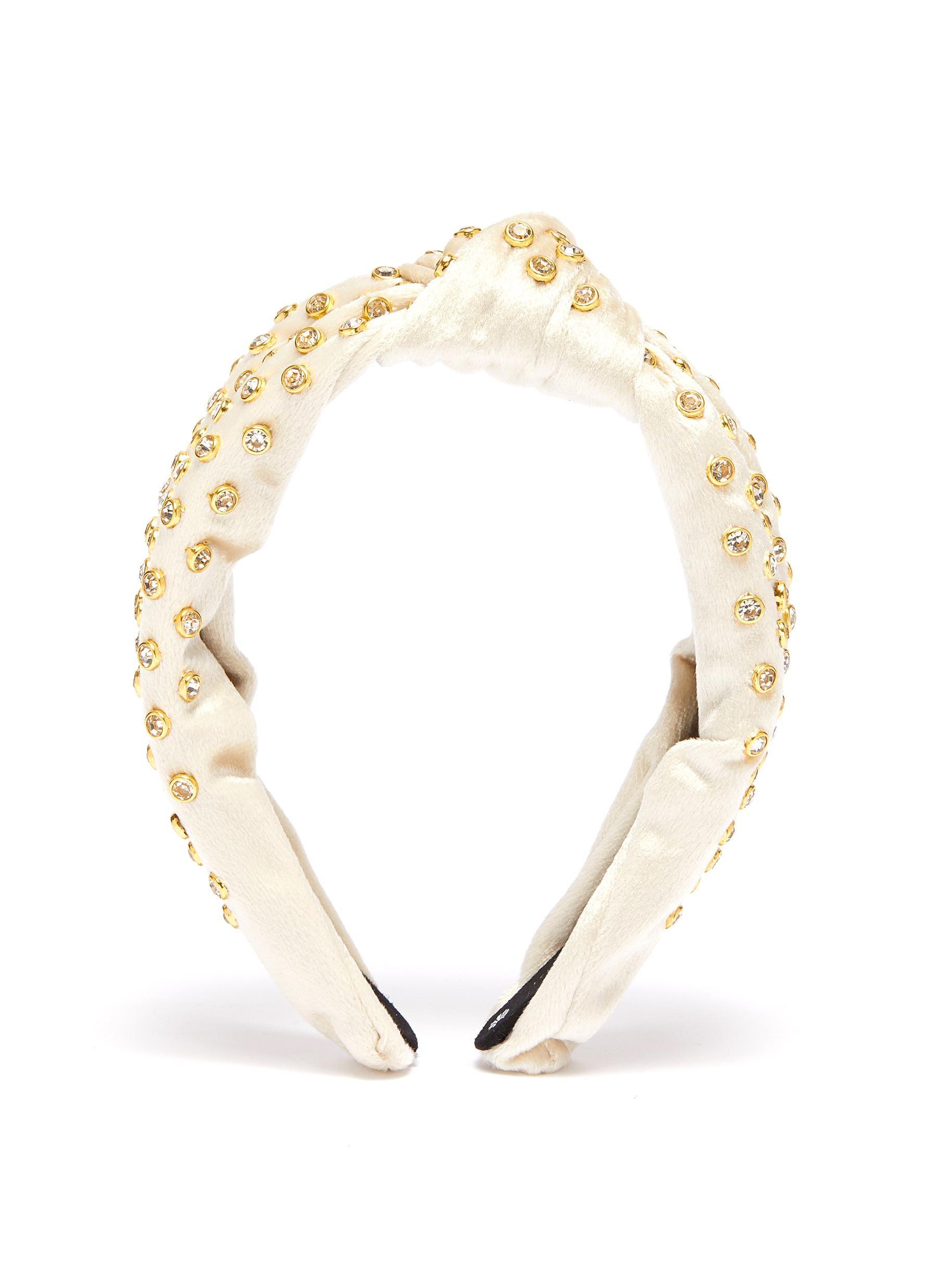 Glass crystal stud knot velvet headband
