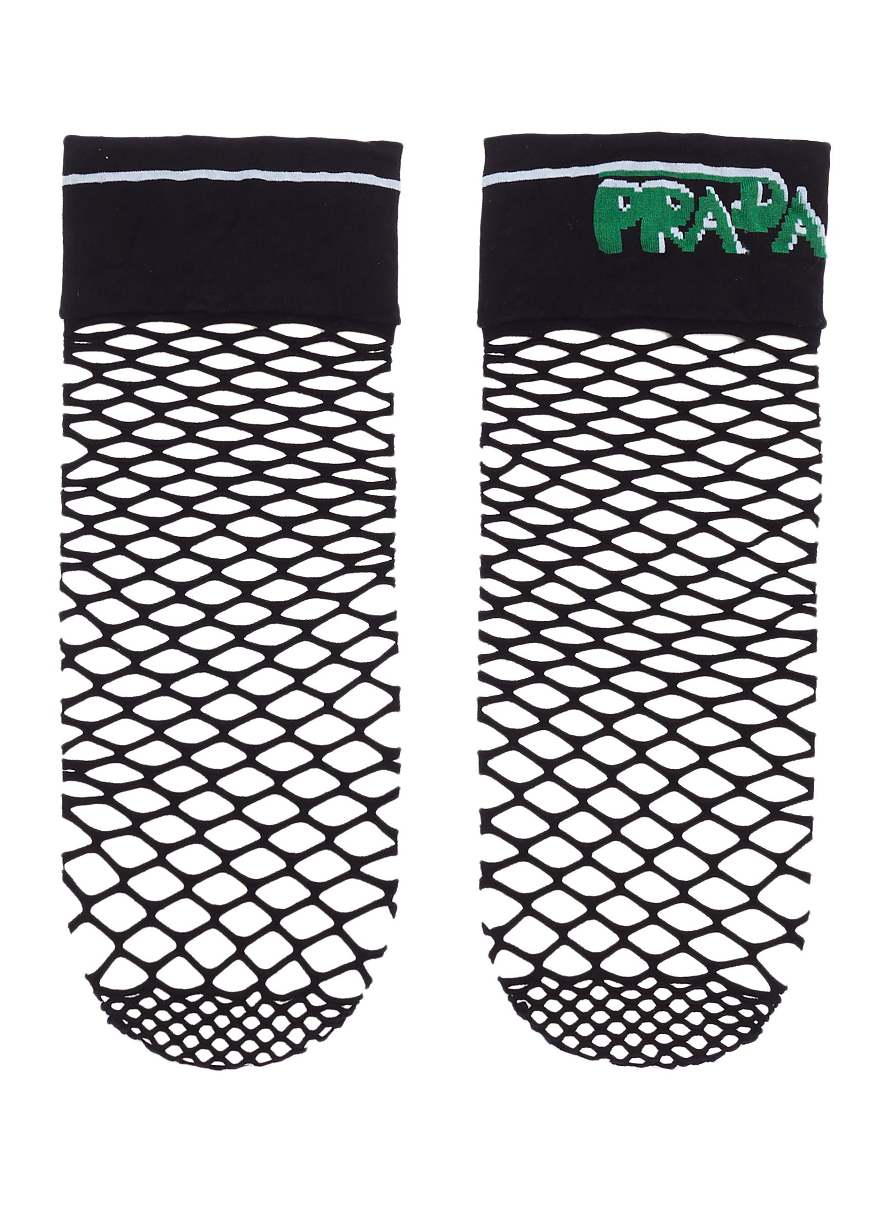 Logo intarsia cuff fishnet socks