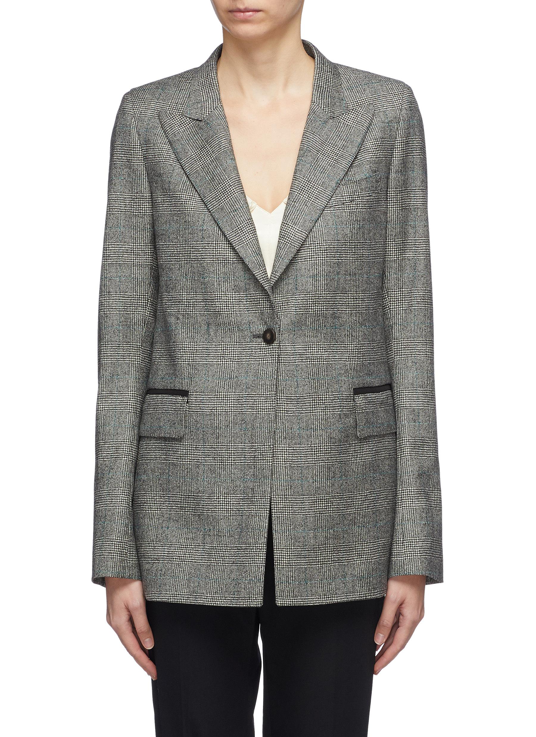 Peaked lapel wool-cashmere houndsooth check plaid blazer - Alex Eagle - Grey