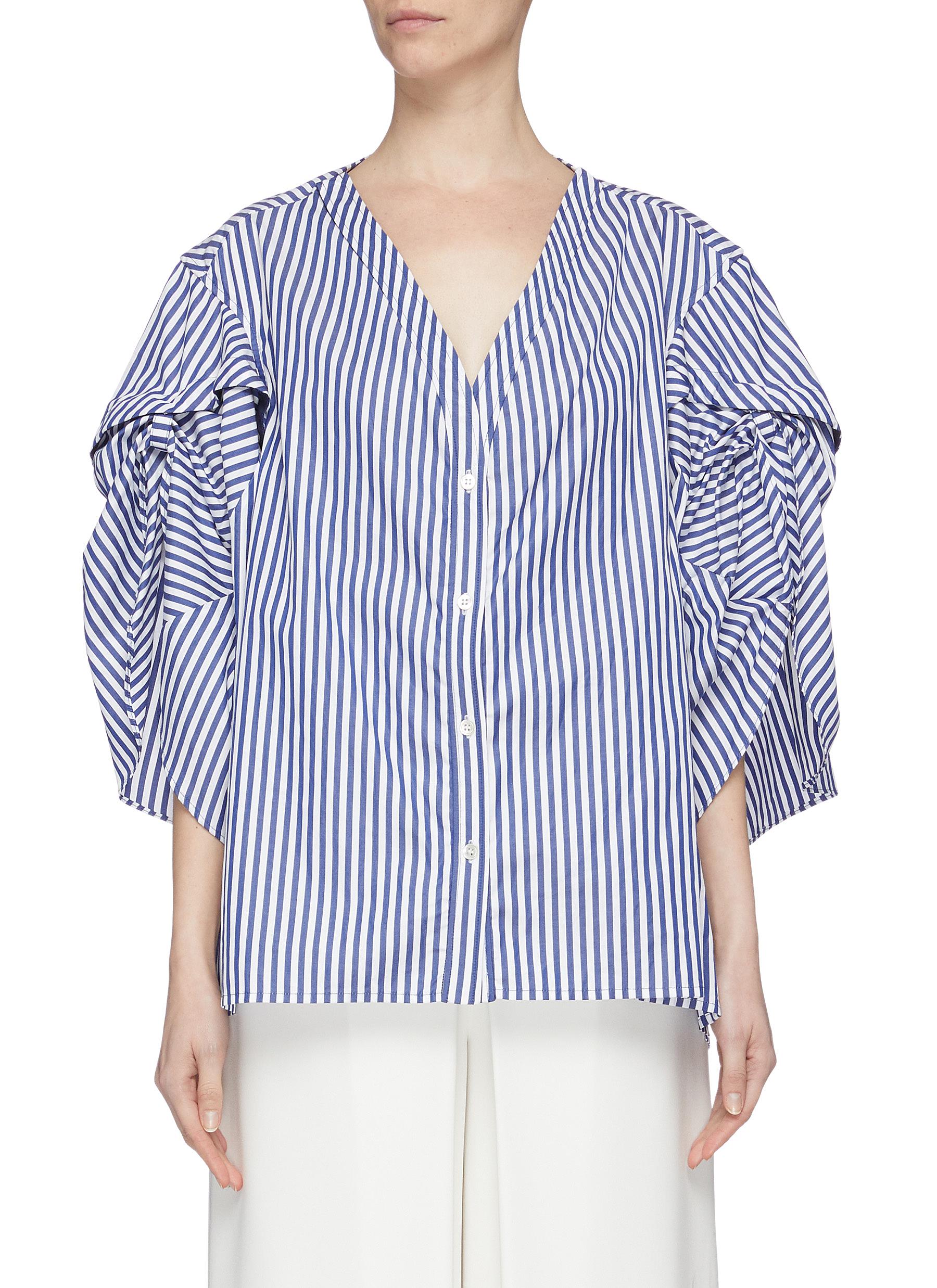 Ruched knot sleeve stripe poplin top - Minki - Multi-colour