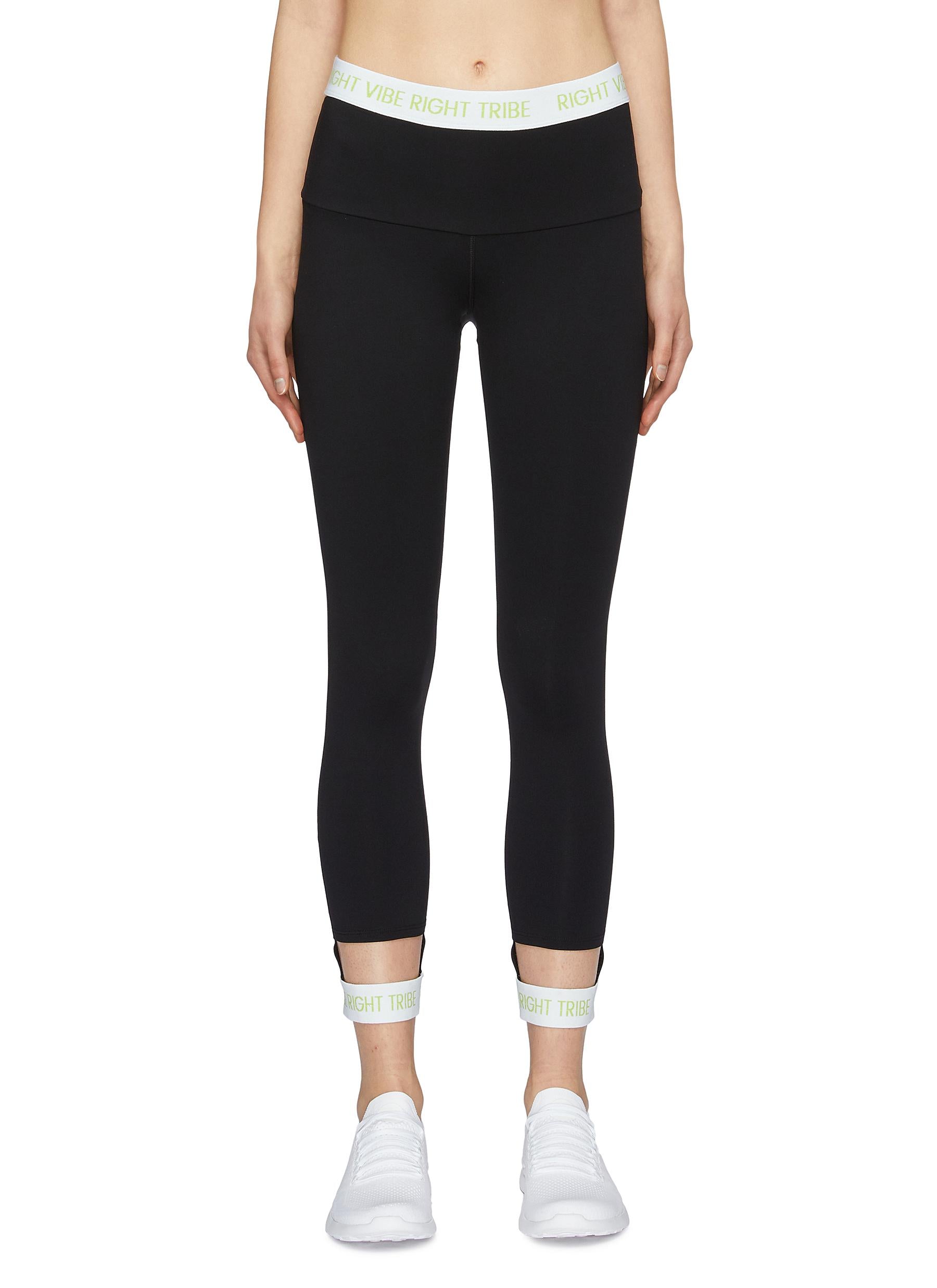 Slogan waistband cutout cuff performance leggings - 42|54 - Black