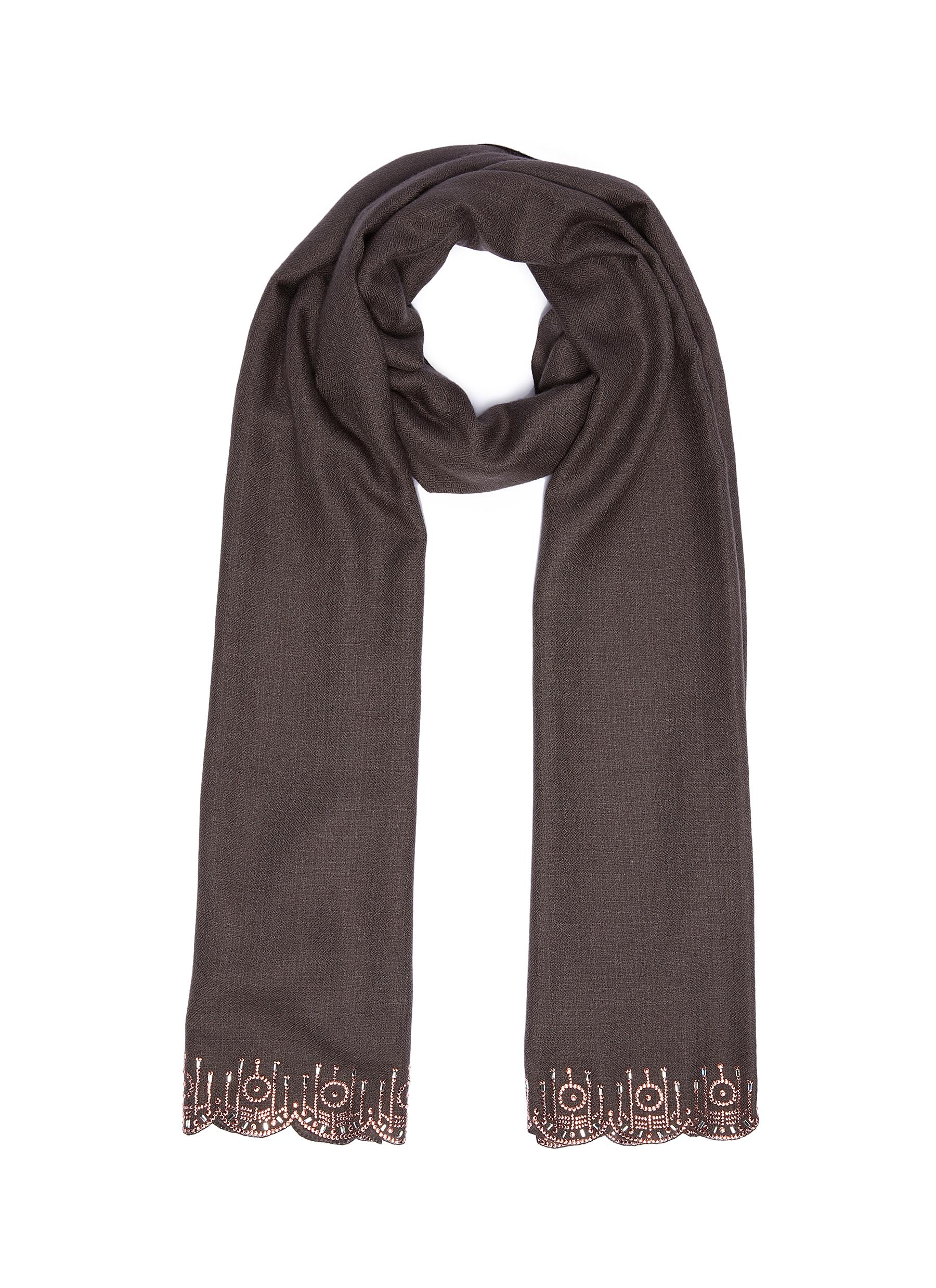 Strass scalloped border cashmere scarf - Janavi - Grey