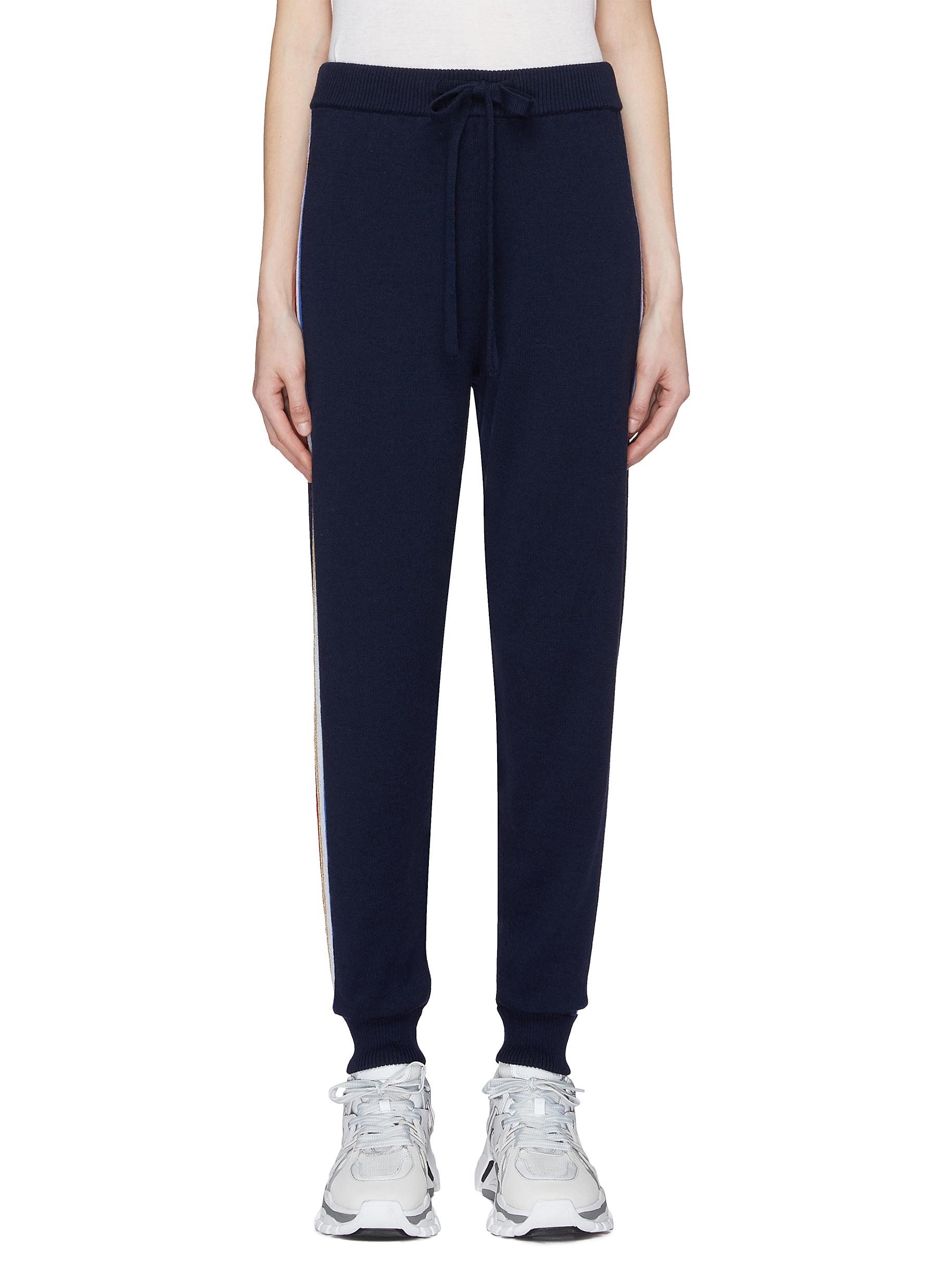 Stripe outseam Merino wool blend knit track pants - être cécile - Blue