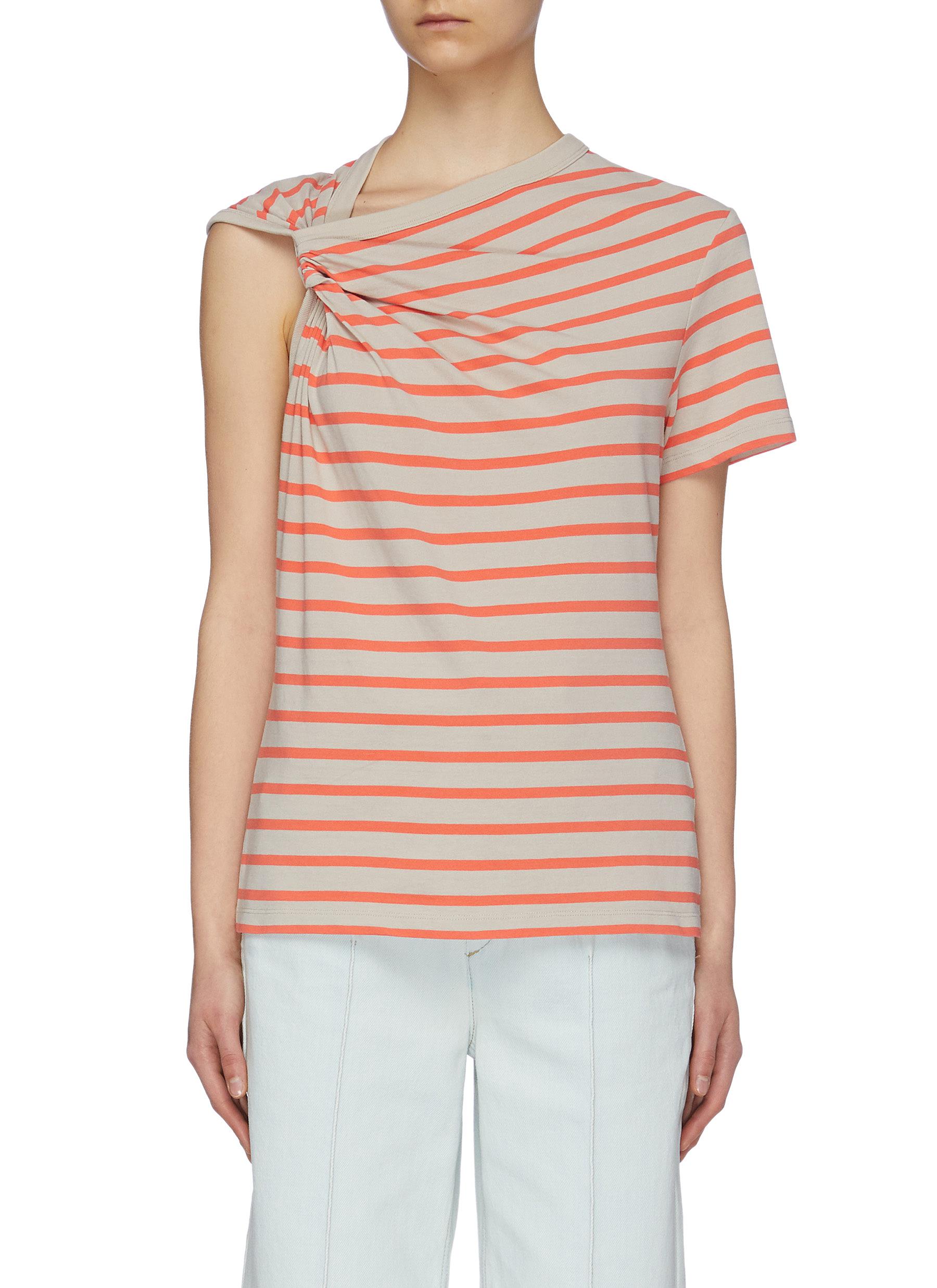 Twisted asymmetric sleeve stripe T-shirt - alexanderwang.t - Multi-colour