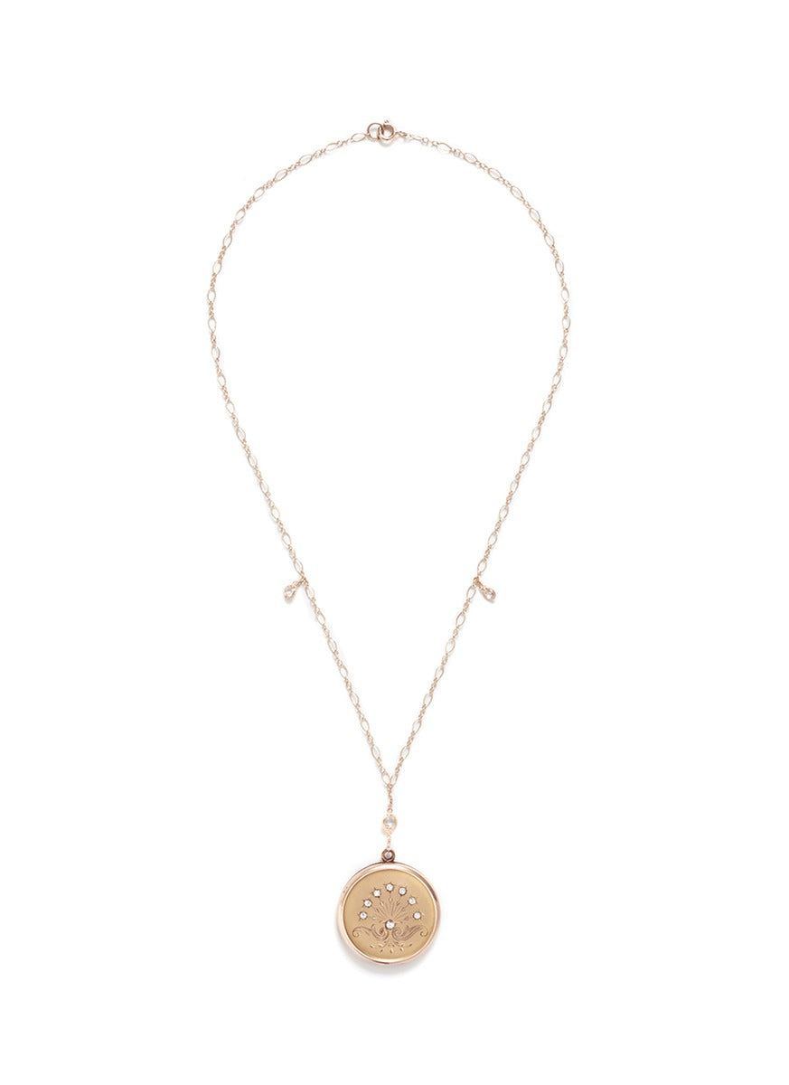 White quartz 14k gold chain round antique locket necklace - Antique Lockets - Metallic