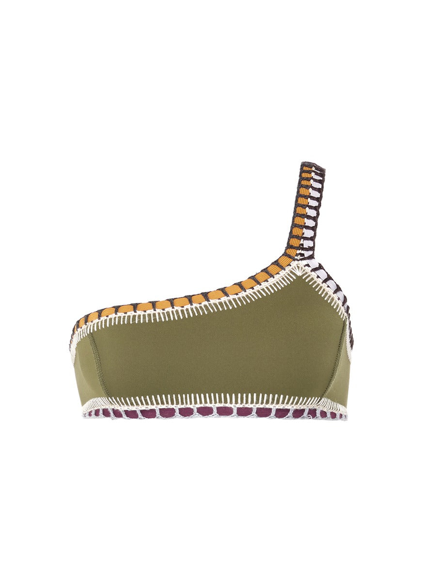 'Wren' crochet trim one-shoulder bikini top - KIINI - Green