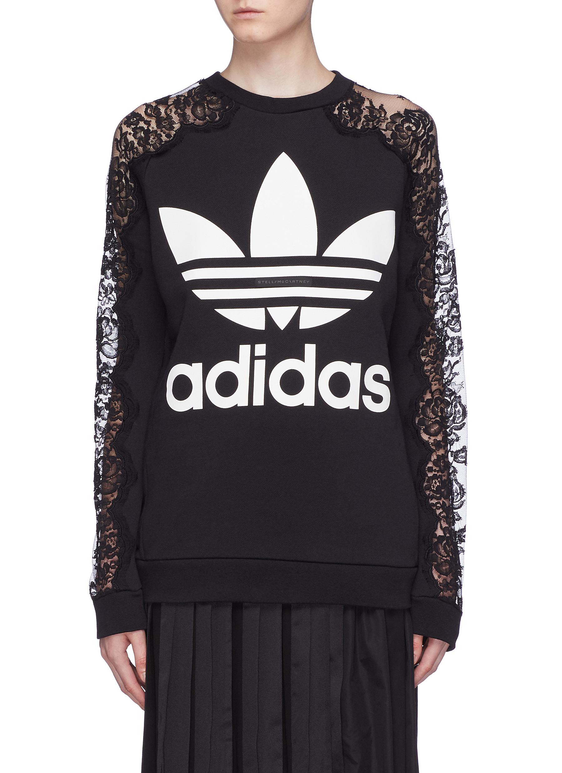 x adidas Chantilly lace sleeve logo print sweatshirt - Stella McCartney - Black